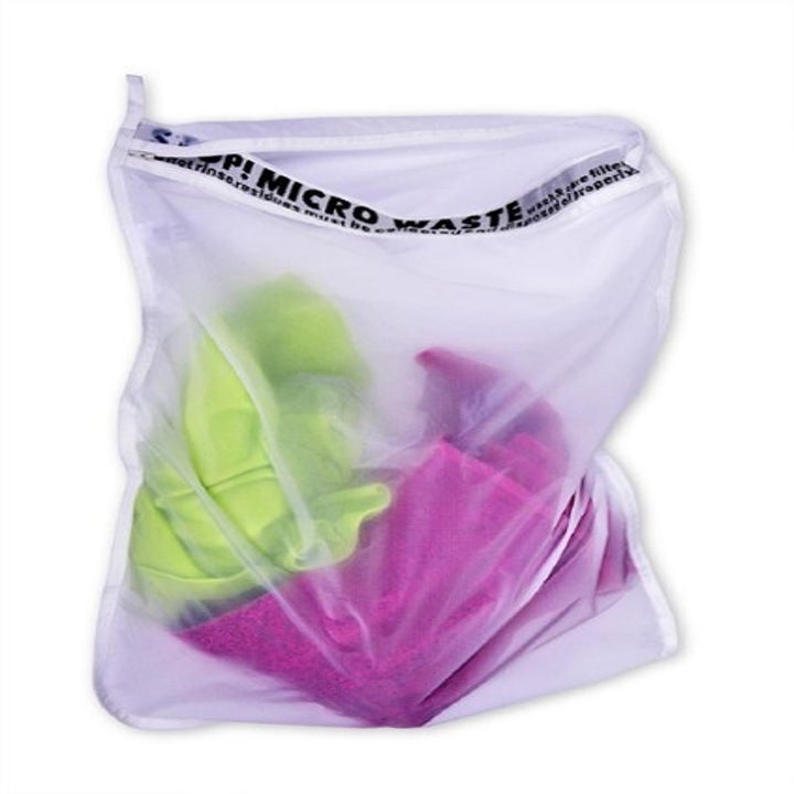 14.A durable and basically genius clothes washing bag because it captures the microplastics from all your polyester, nylon, and other synthetic clothes, swimsuits, and towels *before* the tiny fibers rinse down the drain and make their way into the water system.